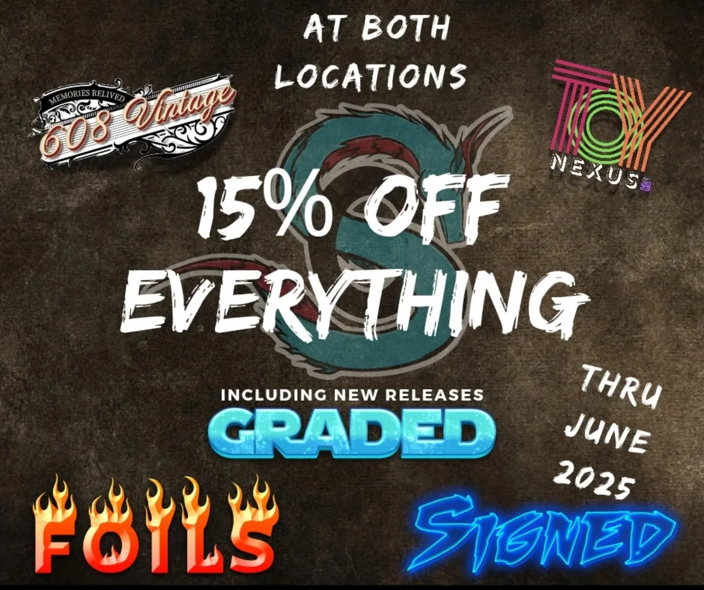 View fullsize 15% off this month everything at our booths inside 608 vintage in Janesville, WI and inside toy nexus in Darien, WI.