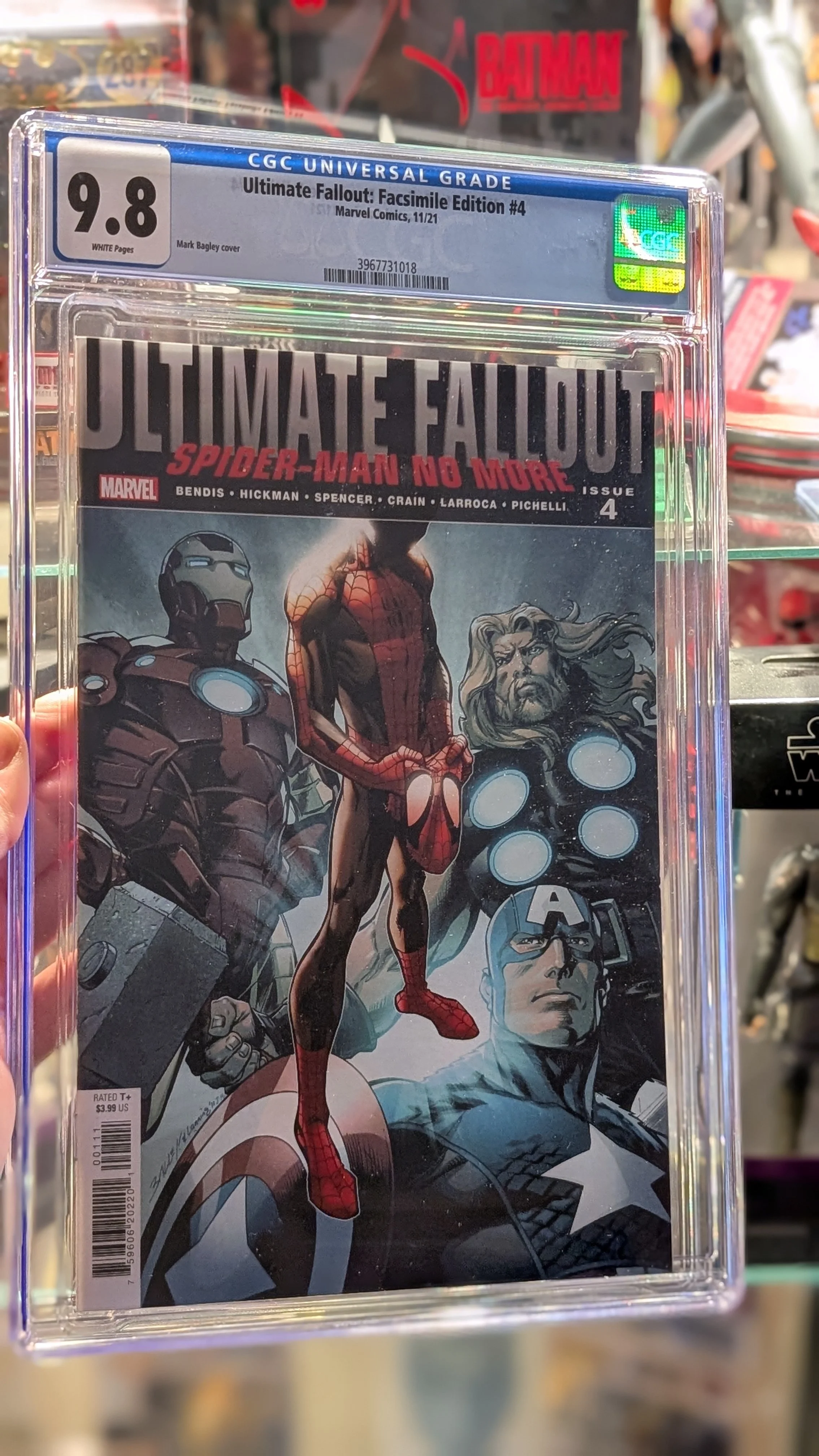 As the Ultimate Universe mourns the loss of Peter Parker, a new Spider-Man for the modern era makes his debut - and he's destined to be a star! The super criminal calling himself the Kangaroo is causing trouble in New York City, safe in the knowledge that Spidey is dead - when a young web-slinger wearing a familiar suit swings in to make the neighborhood his own! But who exactly is under that famous mask? Prepare to get your first glimpse of Miles Morales all over again! Plus: Reed Richards bears the scars of his recent ordeals - and he is determined to solve everything! And Valerie Cooper grapples with a huge secret that will change the world! It's one of the all-time great Marvel comic books, boldly re-presented in its original form, ads and all! Reprinting ULTIMATE FALLOUT #4. Rated T+